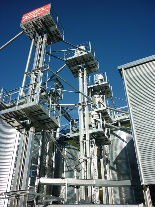The bucket elevators are used for vertical transport of cereals,grain, flour products. The entire series EL is realized with dip galvanizing steel,that made this series suitable for outdoor uses. Also legs can be supplied on dip galvavanized steel or SENDZIMIR galvanizartion. Buckets are made of iron or PVC with high efficiency form while belts are made of rubber, with mediately anti-oil and anti-static coating. Drive is made, on standard execution, by motor, anti-return reduction gear, belt drive; if required drive can be direct assembled on shaft.
